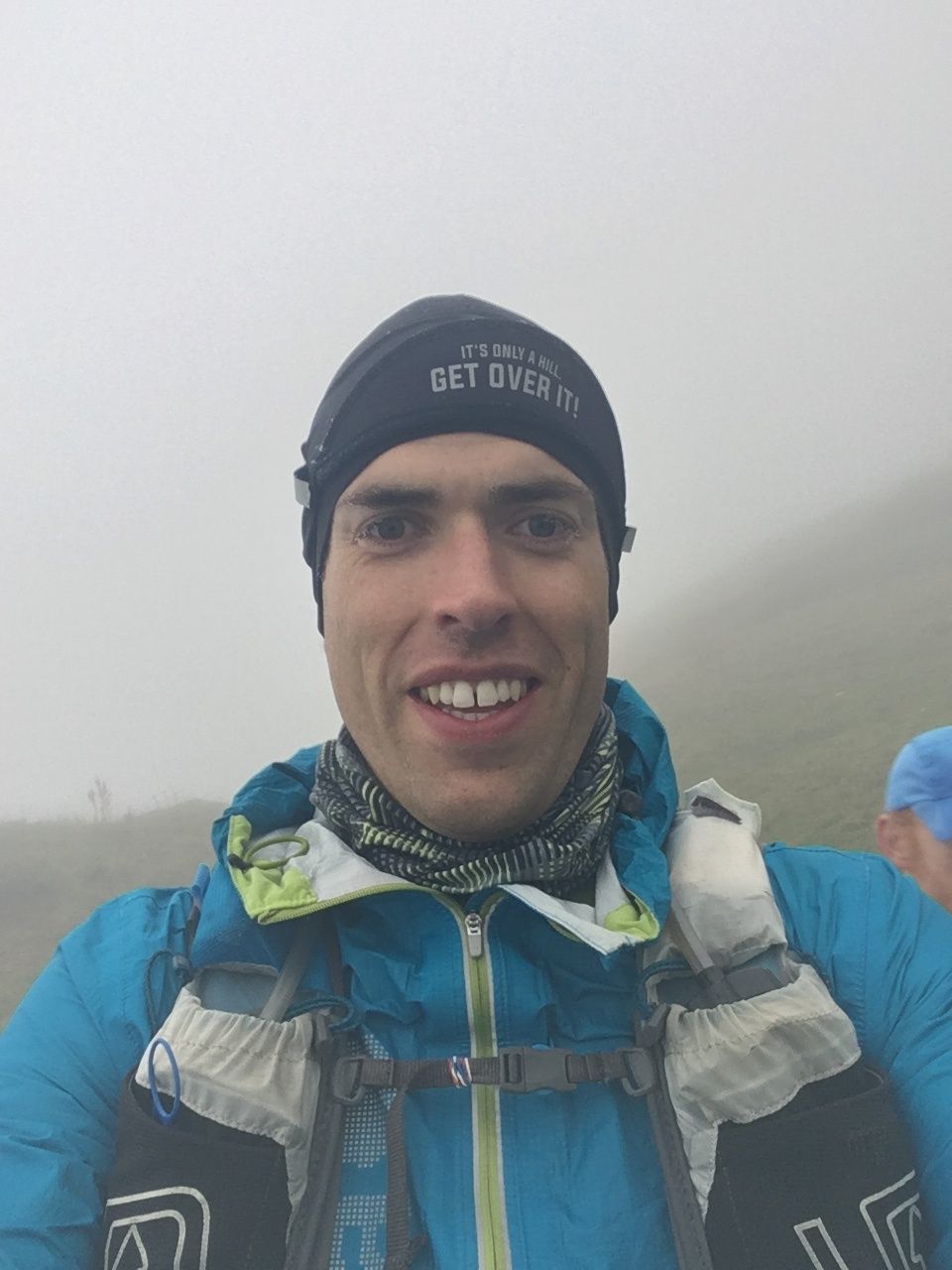 Sur la fin de la montée, les nuages sont bien présents et on sent tout de suite que les températures changent avec un taux d’humidité qui monte en flèche. Je continue de doubler plusieurs coureurs. J’arrive au sommet avec de bonnes sensations, l’humidité ambiante m’a redonné un petit coup de fouet. Les personnes de l’organisation nous indiquent qu’il ne faut surtout pas s’attarder ici vu les conditions. Je décide de ne pas attendre Nico et de partir tout de suite en direction de La Fouly.