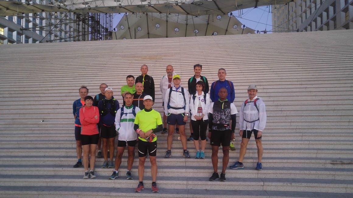 Départ à 7h15 de la Grande Arche de la Défense – XXe siècle – pour la première étape de notre périple matinal à travers les rues de Paris et jusqu’à notre terrain de jeu habituel du bois de Vincennes.
