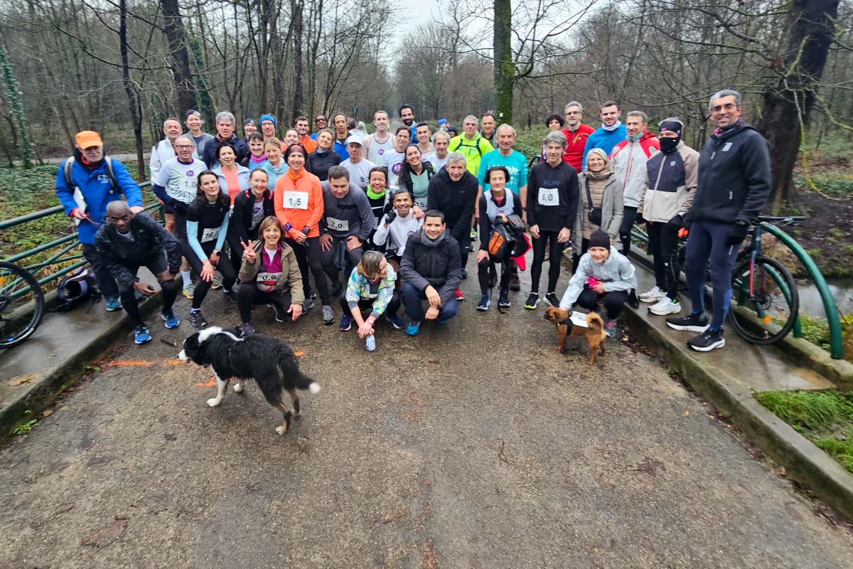 Après les retrouvailles de ce début d’année et l’échange des traditionnels vœux, l’installation du barnum permet à chacun de se regrouper, récupérer son dossard … 45 dossards préalablement préparés par Gégé, puis distribués, puisque le numéro 22,5 (départ toutes les 30″) a même été attribué.