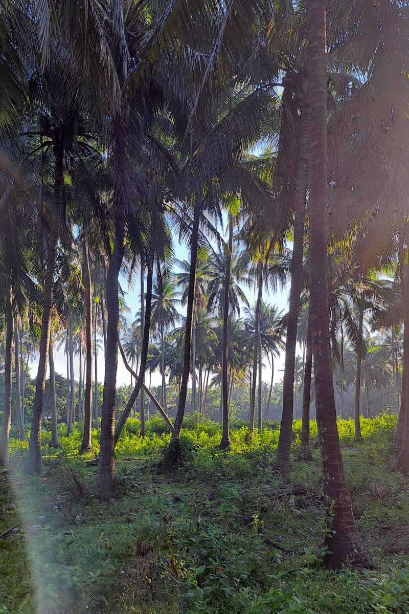 Les paysages étaient magnifiques. Un lever de soleil rose orangé, des rayons filtrant à travers les cocotiers, et au loin, les montagnes. Un camaïeu de verts aux textures infinies. Nous étions au cœur de la jungle.