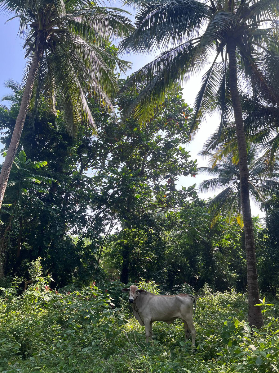 Le parcours était splendide. Nous avons traversé plusieurs villages où les enfants nous souriaient et nous saluaient avec enthousiasme. Et puis, il y avait ces odeurs… Celles que l’on croise rarement dans une vie mais qui marquent à jamais : la fumée des feux de noix de coco, les effluves des vaches et des porcs, les parfums subtils de certaines fleurs… Tout cela me ramenait dans le jardin de mes grands-parents, ravivant de tendres souvenirs.