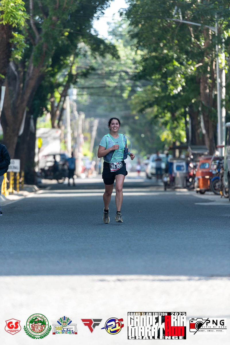 Les derniers km furent interminables : un long faux-plat descendant sur asphalte dans la ville de Candelaria, sous une chaleur écrasante, avec les motos qui nous frôlaient. Soudain, un policier surgit, sirène hurlante, calé à deux mètres devant moi. Génial… je profite à plein poumon de son pot d’échappement. Il me faut bien cinq minutes pour comprendre : j’étais parmi les premiers, et il m’escortait jusqu’à l’arrivée ! Quelle classe ! Alors, j’ai redressé le buste et lâché mes plus belles et longues foulées (bon… 6’30 au kilo, paraît-il 😆).