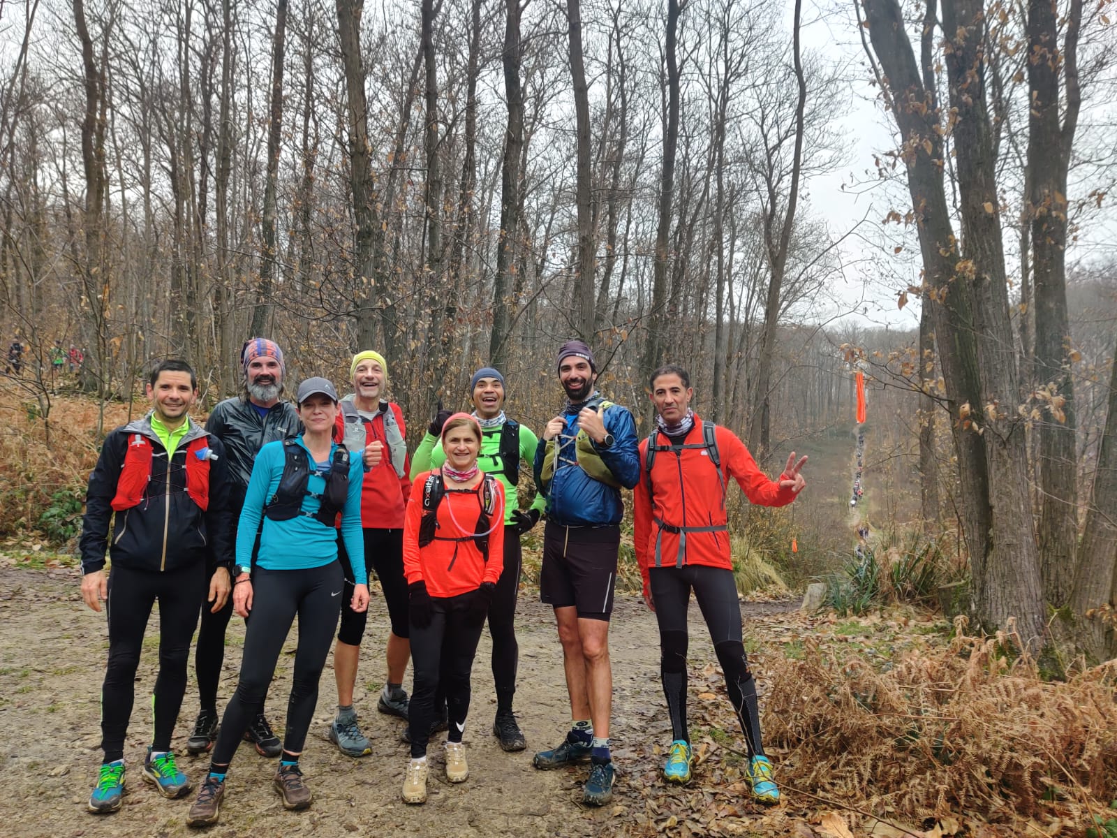 On monte, on descend, on prend à gauche, à droite. Mon dieu j’ai intérêt à suivre le groupe pour ne pas me perdre sans quoi je servirai de petit déjeuner aux sangliers. Mais tout va, l’équipe suit un rythme sympa avec quelques poses pour saluer les coureurs du Maxicross. La pause qui est certainement motivé par un esprit sportivement et pour moi bien plus opportuniste pour reprendre ma respiration. La chance nous sourit, nous croisons Julien et nicolas qui court le 42.