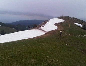 On enchaine les montées toujours dans un cadre très bucolique et toujours très gras pour atteindre Prémanon à 1120m. Un peu plus de 12,5km en 2h. je suis toujours bien. Je passe vite le premier ravito. Au moment d'attaquer la première grosse difficulté, je traverse un bourbier et ai le plaisir d'y laisser mes 2 chaussures. Je perds plusieurs minutes à essayer de réparer les dégâts avant la célèbre montée des Tuffes qui me rappelle mes leçons de ski quand j'étais gamin. Vers 1300m on rejoint les premiers névés que l'on contourne sans problème. La descente sur les Dappes par une piste verte permet de traverser la neige pour la première fois et de relancer la machine jusqu'au 2ème ravitaillement après 20,5km atteint après 3h15.