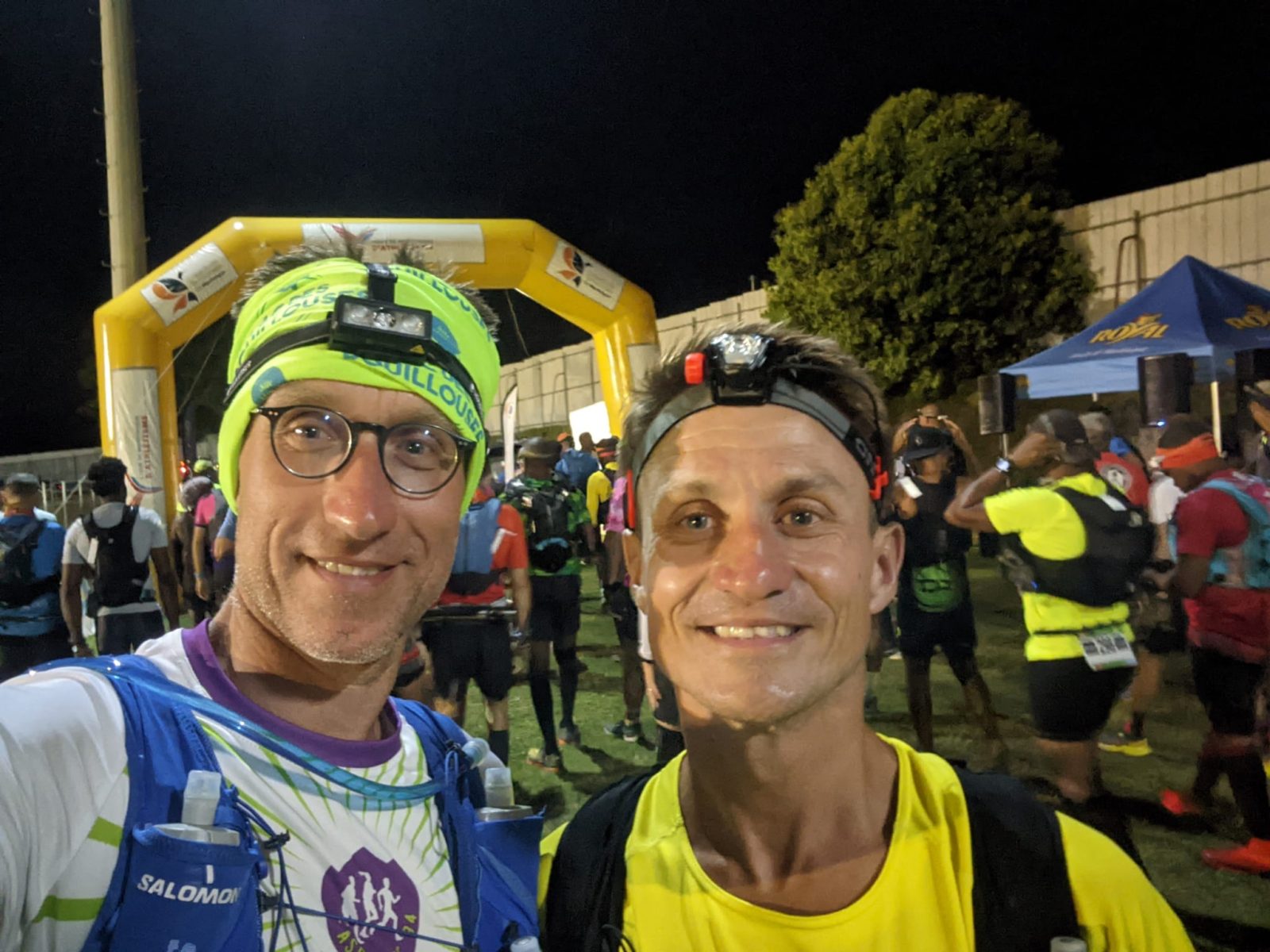 Nous ne sommes pas nombreux sur la ligne, à peine 115, mais dans le stade il y a pas mal de monde et une bonne ambiance car les gars qui courent le 103km passent aussi par-là, c’est une de leur base de vie.