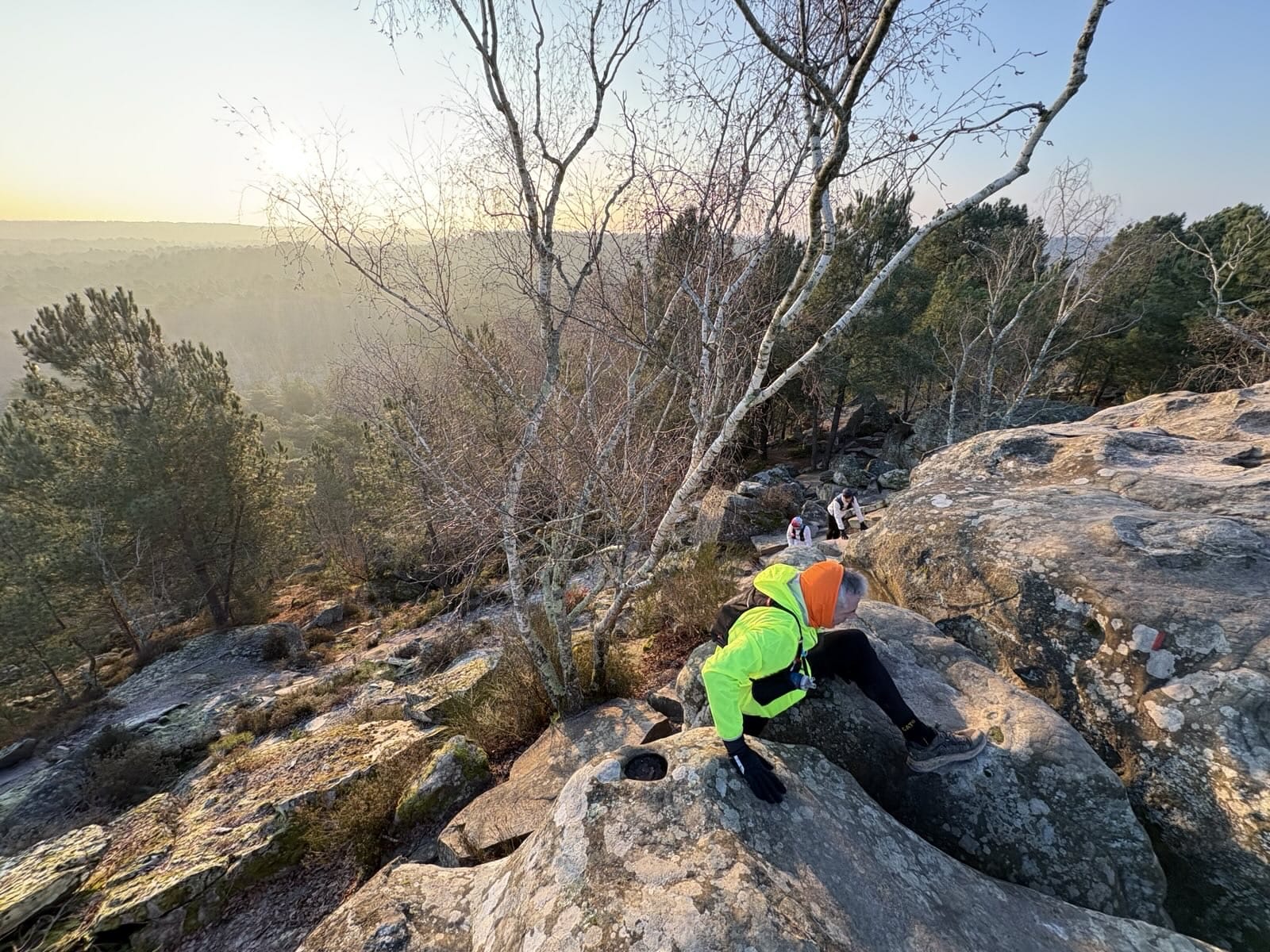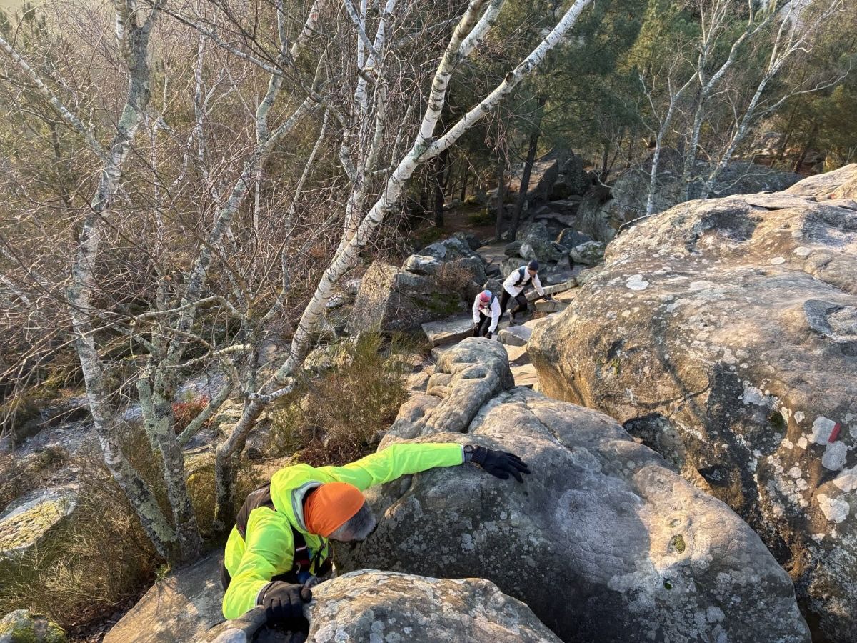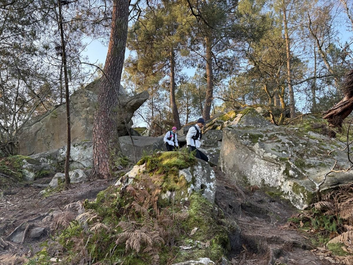 Guillaume propose une sortie à Fontainebleau sur le parcours des 25 bosses (16 km D+ 800) en mode TRANQUILLOU. Excellent ! Aïe, c’est le 27 décembre. Je pars le lendemain à la montagne, du coup j’hésite, par peur d’une chute compromettant mes vacances.