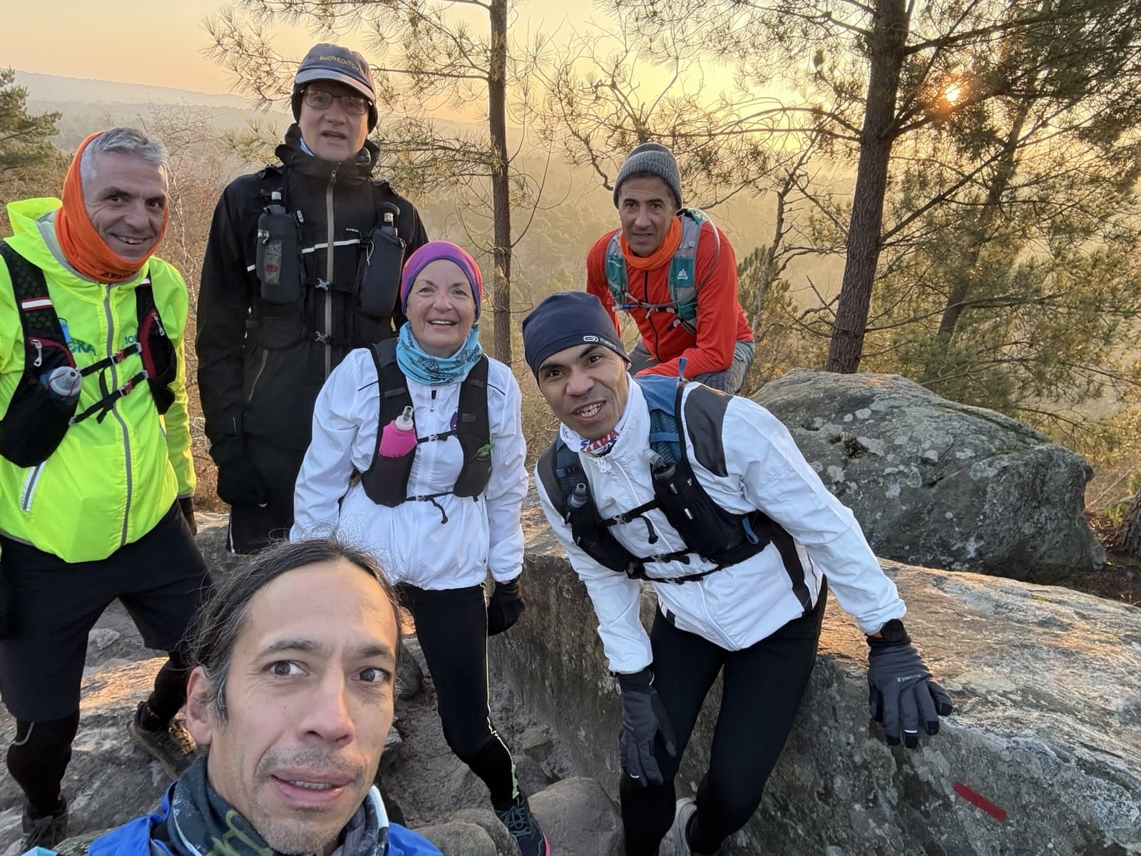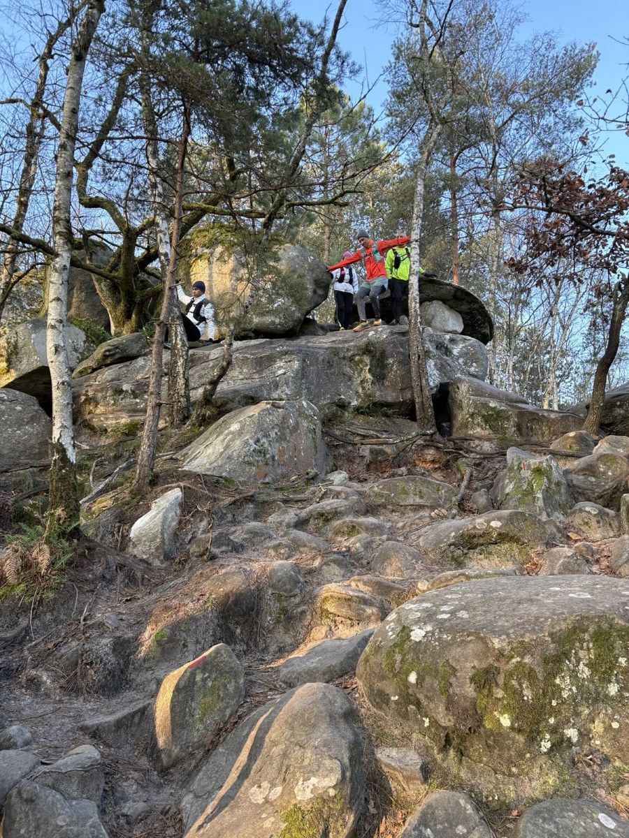 En ce dernier weekend de l’année 2025, Guillaume a proposé une sortie improvisée dans la forêt de Fontainebleau sur le parcours des 25 bosses aux Asphaltiens pour donner l’occasion de tester les cadeaux sportifs reçus le jour de Noël ou d’enlever quelques grammes superflus pour préparer la venue des mets du Réveillon du nouvel an.
