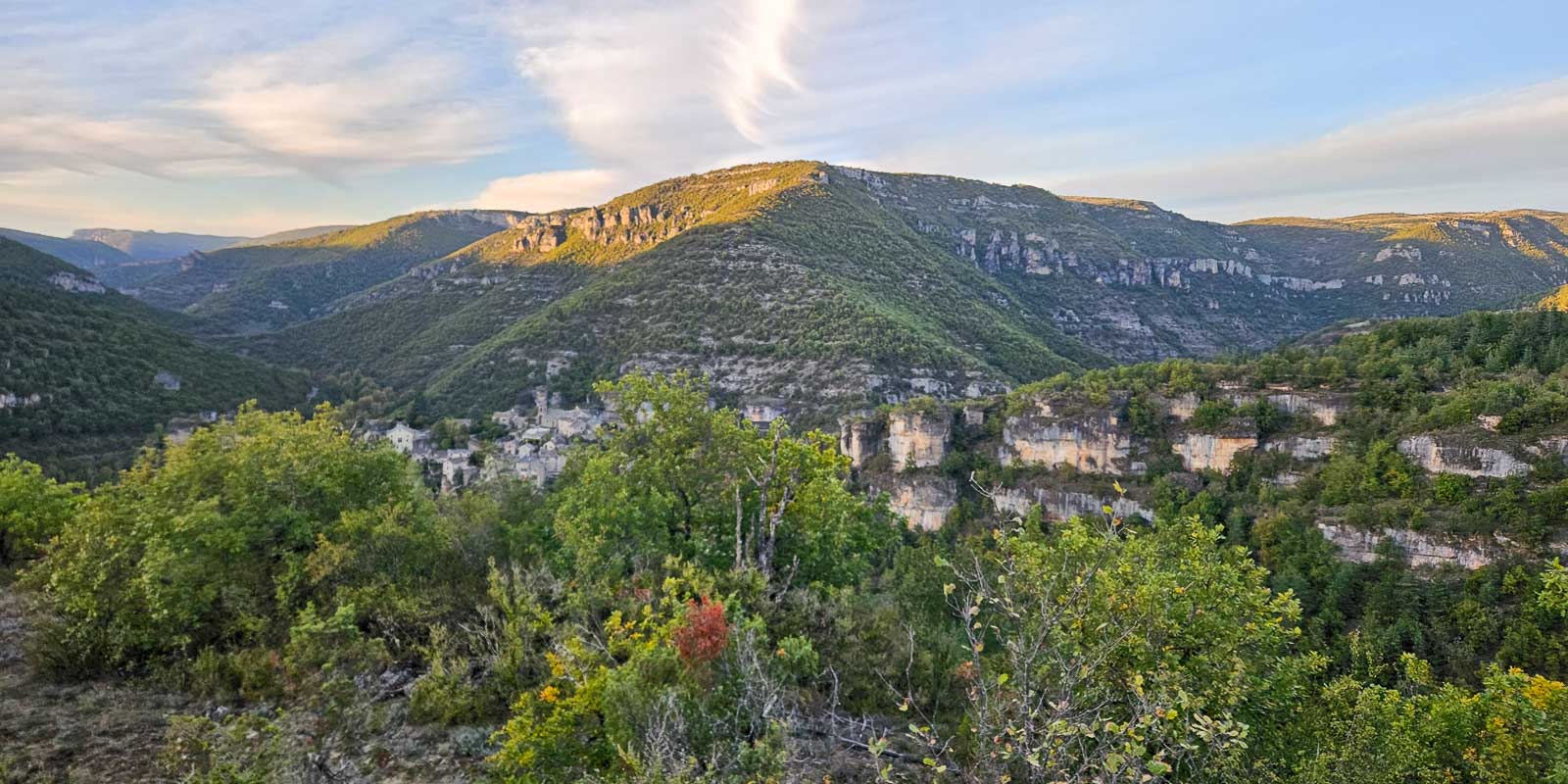 Si nos trois camarades (Olivier, Nicolas B, Nicolas L) sont rompus aux trails longs, voire ont déjà couru ici, pour Alice, Morena, Anne et moi-même, il va s’agir de notre premier trail sur une aussi longue distance. Il y a donc un peu de fébrilité dans l’air, la veille de la course, au moment de préparer les sacs. Michel, lui, engagé sur le trail Larzac-Dourbies (30km, 1400 D+), nous donne l’occasion de nous changer les idées, en assistant à son arrivée au coucher de soleil après une très belle course. La descente finale du Roc Nantais en face du village est la même que la nôtre, on se projette donc avec les points lumineux qui percent au loin dans l’obscurité.