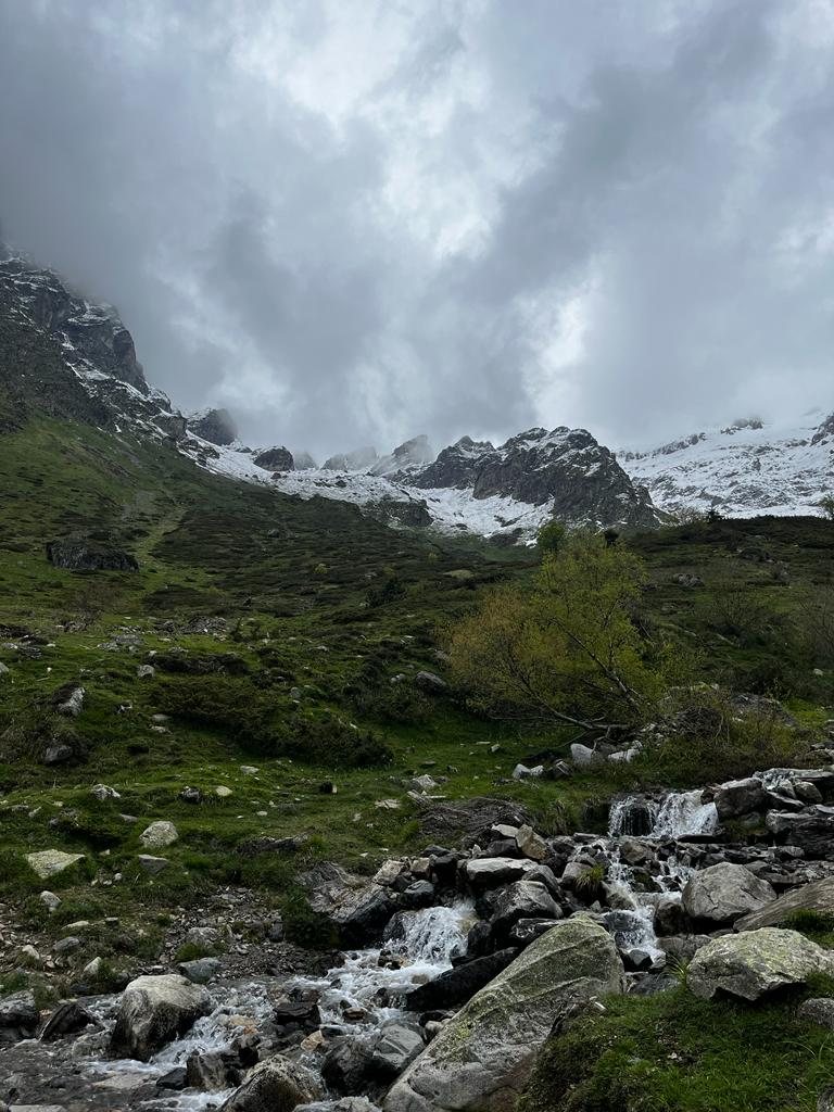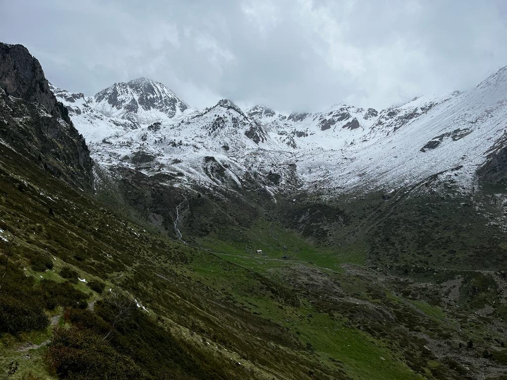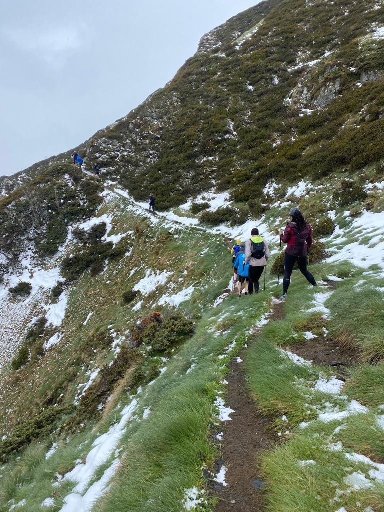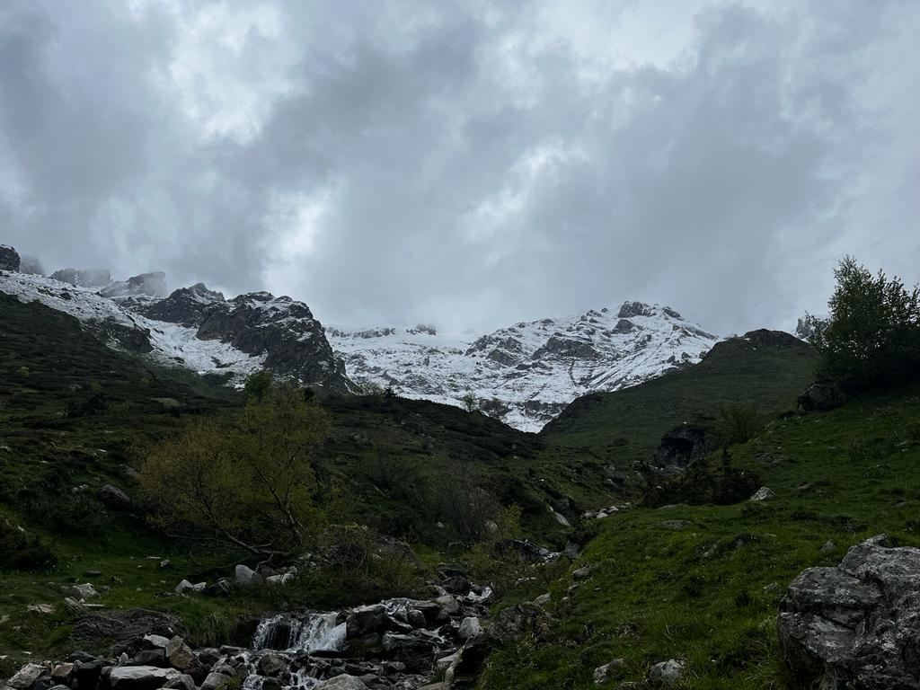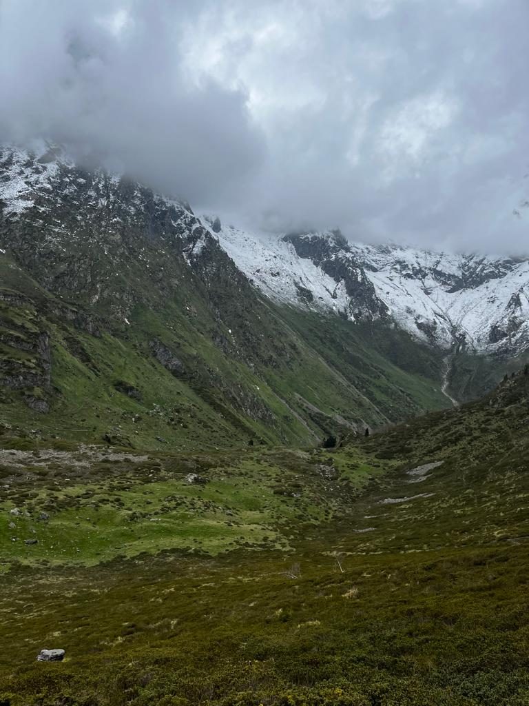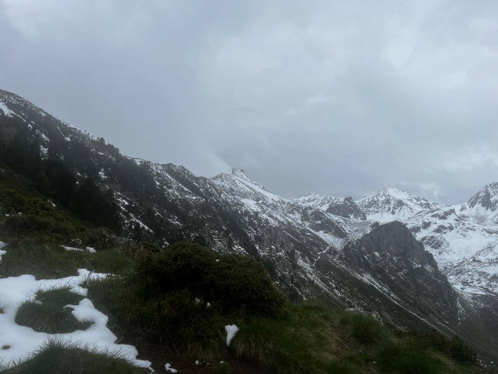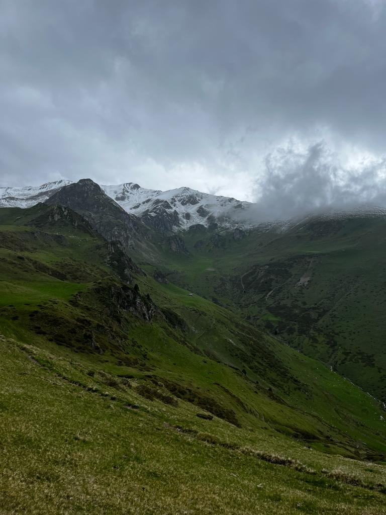 Froid oblige, on retourne au gite pour le déjeuner… Mais pas facile de repartir ! Certains sont restés se reposer, quand d’autres, décidés à voir de la neige, repartent en voiture pour prendre de la hauteur (et merci à Alexandre qui nous a permis d’y aller en conduisant une partie du groupe là haut !). Là, menés par Farid et Jules, on a pris l’assaut de la montagne, et à force de grimper à travers la brume nous arrivons à la cabane Auloueilh, surplombant un torrent sinueux à travers un haut plateau. Puis le groupe se sépare en deux, certains redescendent, et d’autres décident de continuer pour monter encore un peu plus, et finalement marcher sous la neige : on n’a pas été déçus ! Les nuages ont bien voulu se dégager quelques instants pour que l’on puisse quand même admirer la vue. La redescente en revanche était un peu trop fraîche à notre goût (et une petite pensée pour Morena qui a perdu un genou au combat).