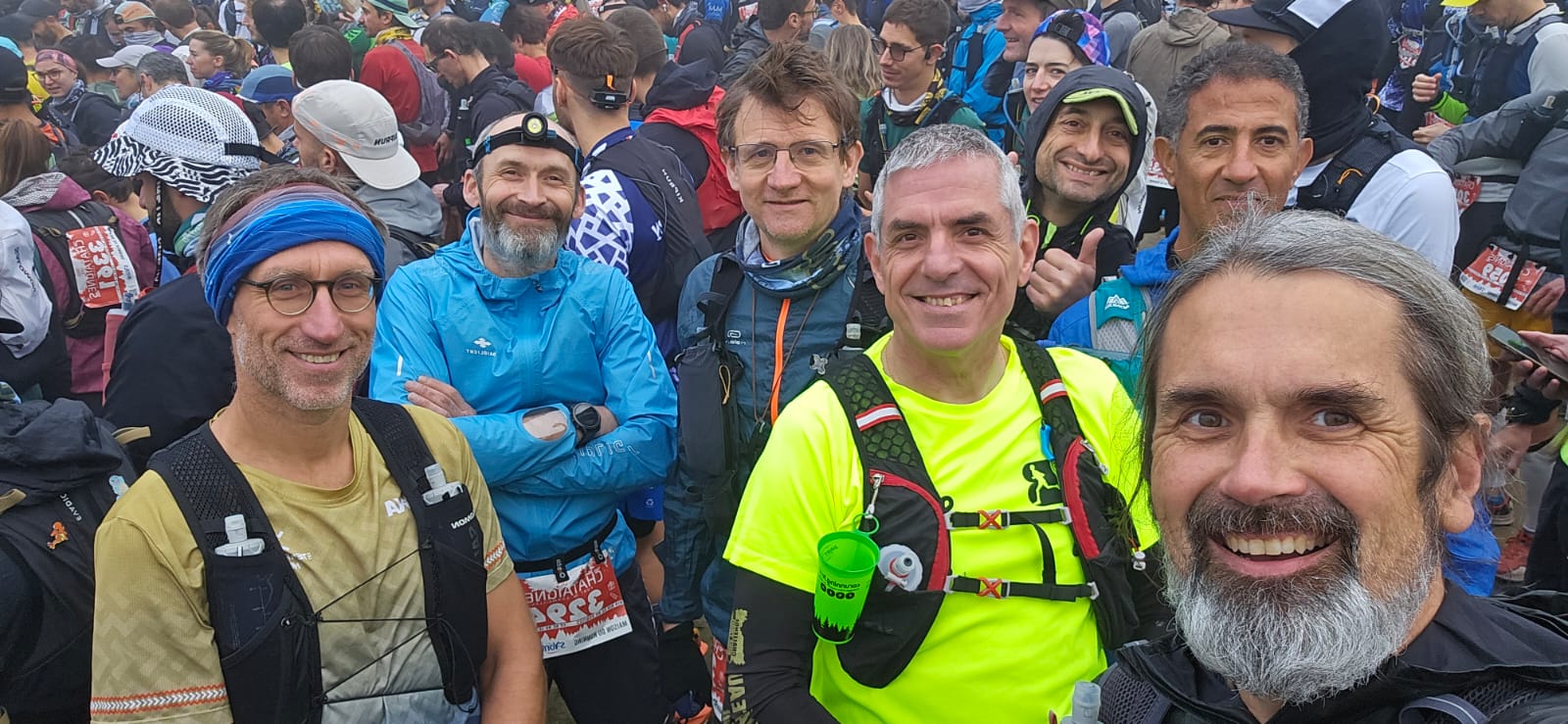 Regroupement de fin de course avec les potes du 32 km. Bien cool de partager nos impressions avant le retour à la maison.