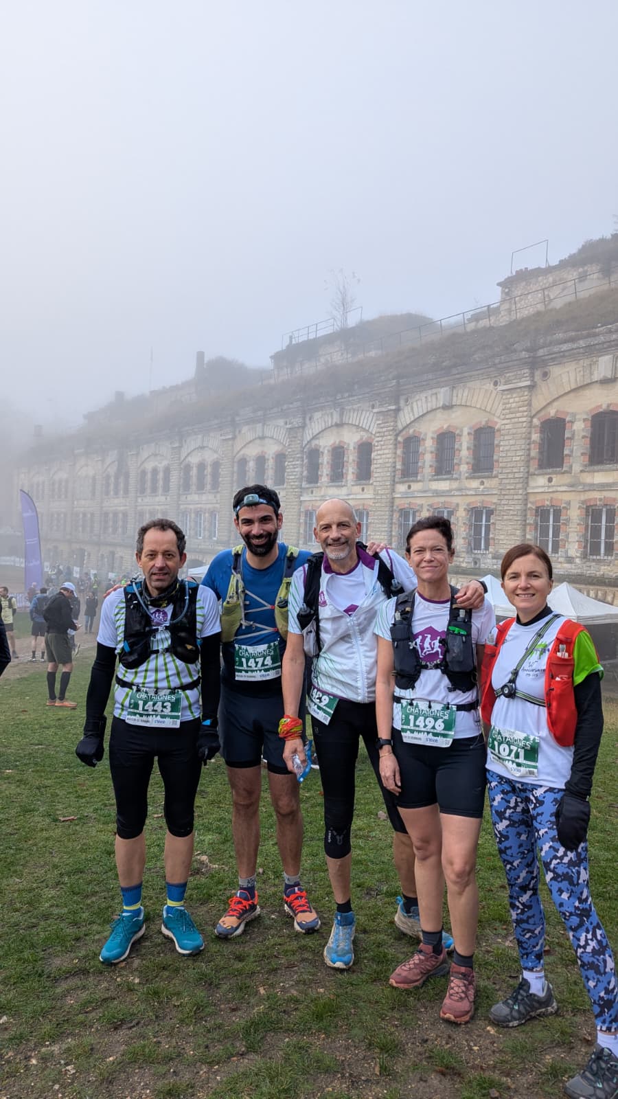 Le trail des châtaignes : 36 km et 1150 D+ annoncé au départ du Fort de Cormeilles. Belle délégation de l’asphalte 94 avec pas moins de 8 motivés sur ce format ! Première fois pour moi, petite excitation de la découverte et temps relativement ok par rapport à la saison : 10-12°C et pas de pluie. Un peu de boue mais pas si glissant que ça, bon, après certains T-shirts et shorts sont quand même bien colorés à la fin.