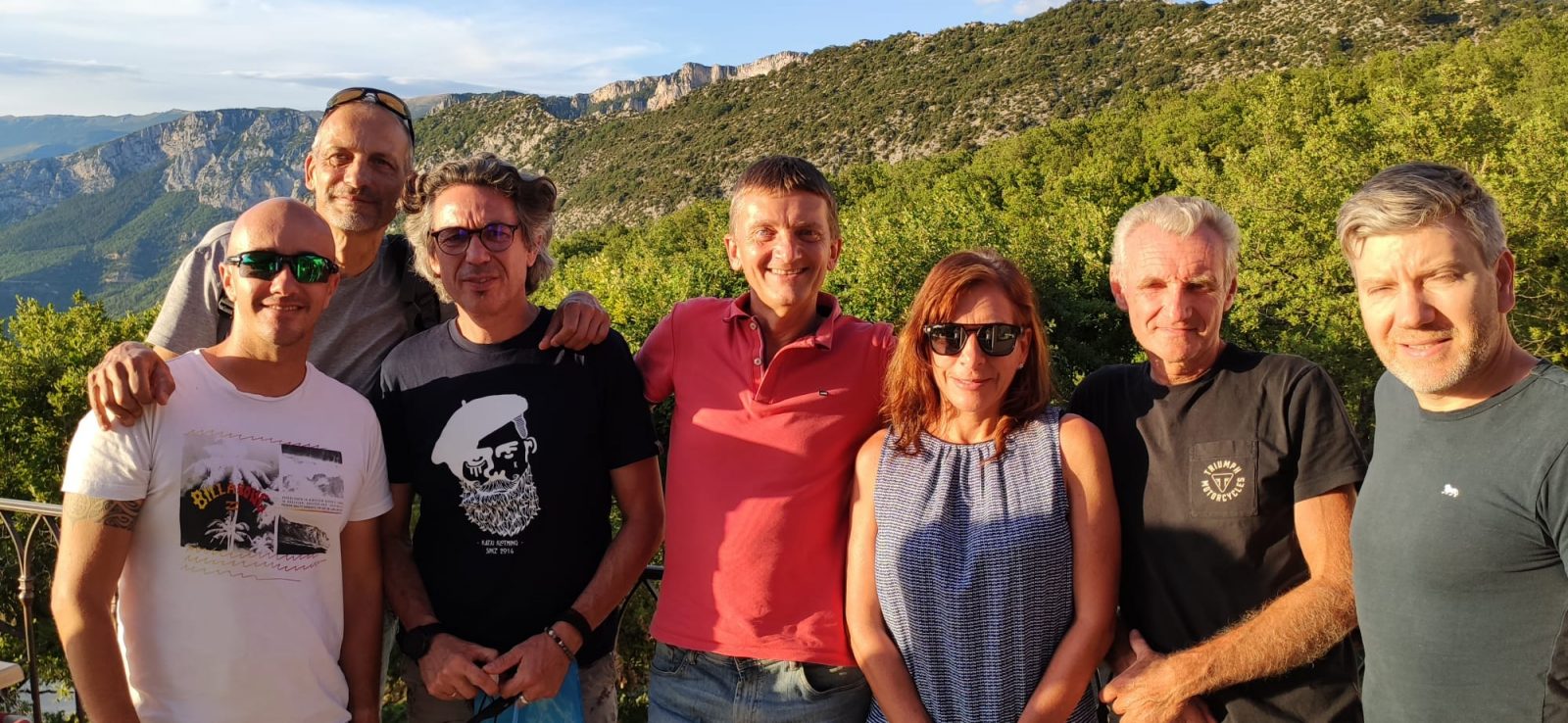 Sur le 30km, levé à 5h pour être au briefing express -attention à la dernière descente c’est dangereux – de 5h30. Arnaud, Nathalie et moi partons à 6h sur des chemins techniques en descente vers le lac Ste Croix puis première montée entre les sapins pour arrivée sur la rive gauche du canyon de Verdon. Vue superbe mais chemin rocailleux avec parfois le vide tout près jusqu’au deuxième et dernier ravito du 20km. C’est partit pour 5km de montée avec des paysages variés pour arriver à un point de vue dominant tout le parc naturel. Et en suivant la piste du GR c’est la descente ´dangereuse’ qui souligne qu’en trail les descentes ne sont pas pour se reposer. On a un peu moins l’occasion d’apprécier le paysage mais on profite des odeurs de thym et de lavande.